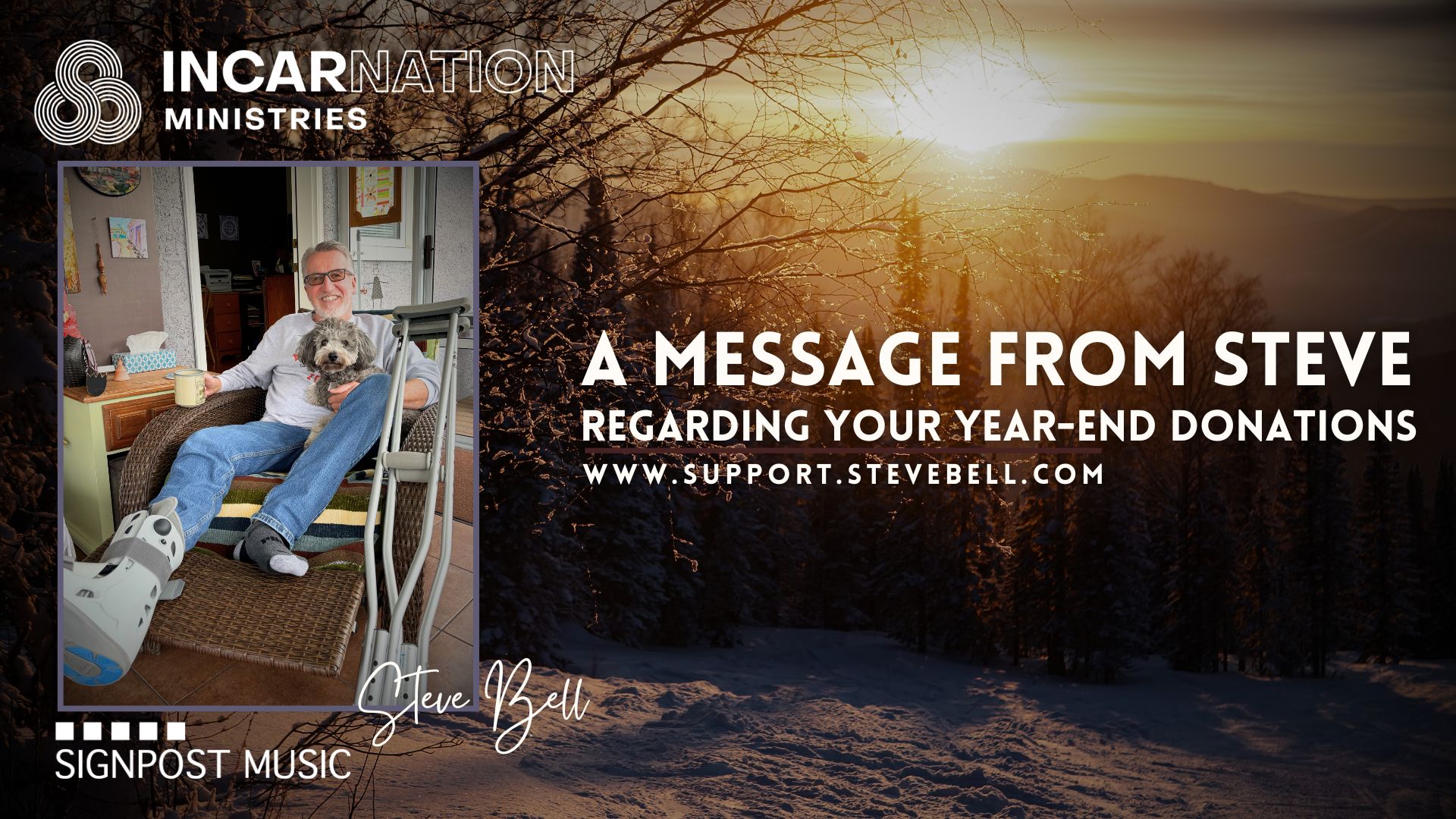 All donations for Steve Bell are processed by and receipts issued by IncarNATION Ministries a registered Canadian charity No. 88728 3208 RR0001.